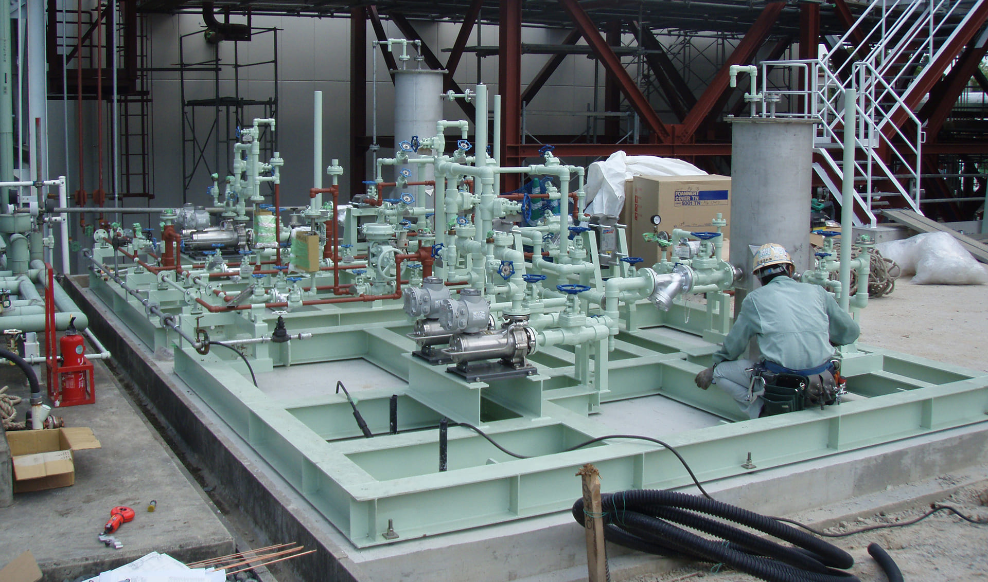 各種機器類、架台、配管の製作から仮組立まで施工します